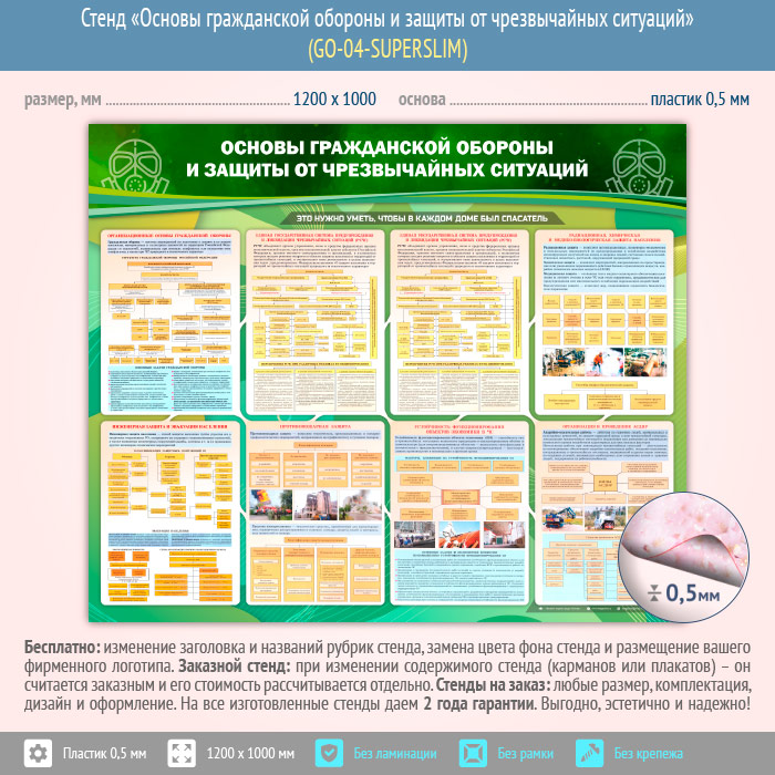 Стенд «Основы гражданской обороны и защиты от чрезвычайных ситуаций» (GO-04-SUPERSLIM) в Видном купить