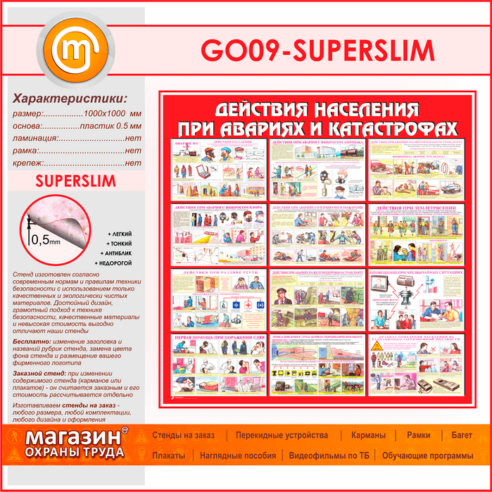 Стенд «Действия населения при авариях и катастрофах» (GO-09-SUPERSLIM) в Видном купить