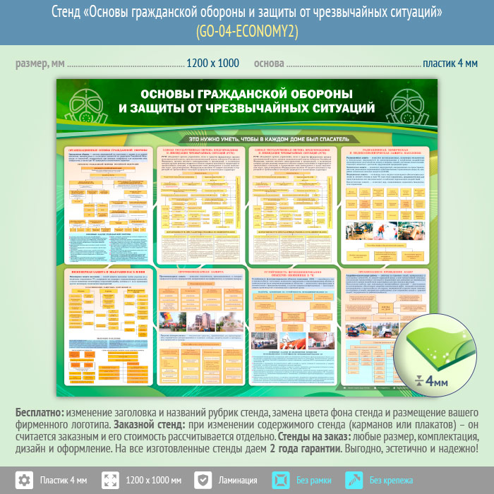 Стенд «Основы гражданской обороны и защиты от чрезвычайных ситуаций» (GO-04-ECONOMY2) в Видном купить