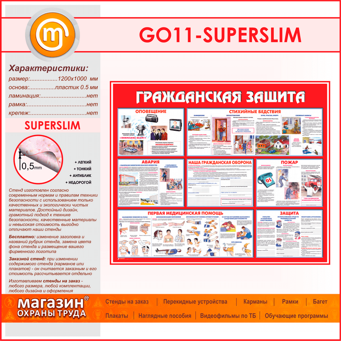 Стенд «Гражданская защита» (GO-11-SUPERSLIM) в Видном купить