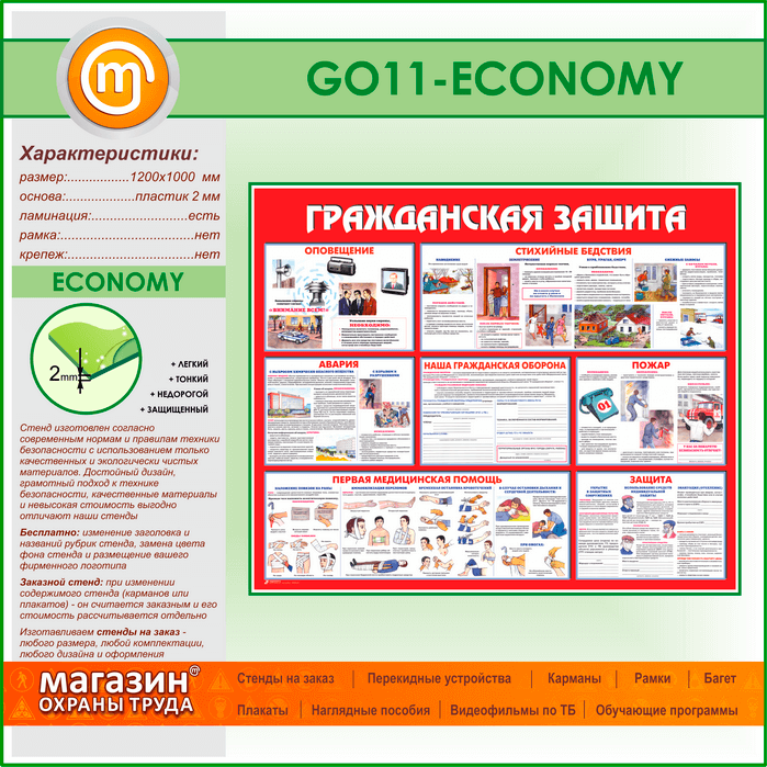Стенд «Гражданская защита» (GO-11-ECONOMY) в Видном купить