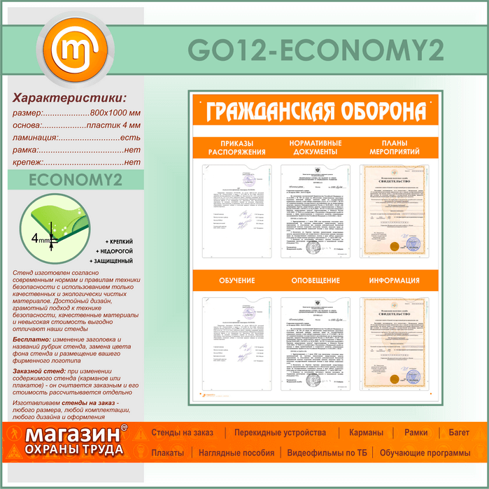 Стенд «Гражданская оборона» с 6 плоскими карманами (GO-12-ECONOMY2) в Видном купить