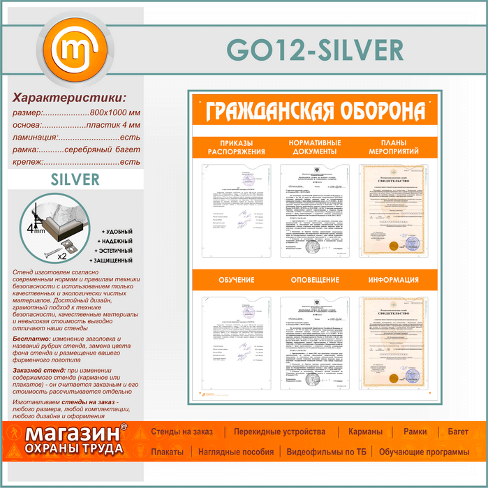 Стенд «Гражданская оборона» с 6 плоскими карманами (GO-12-SILVER) в Видном купить