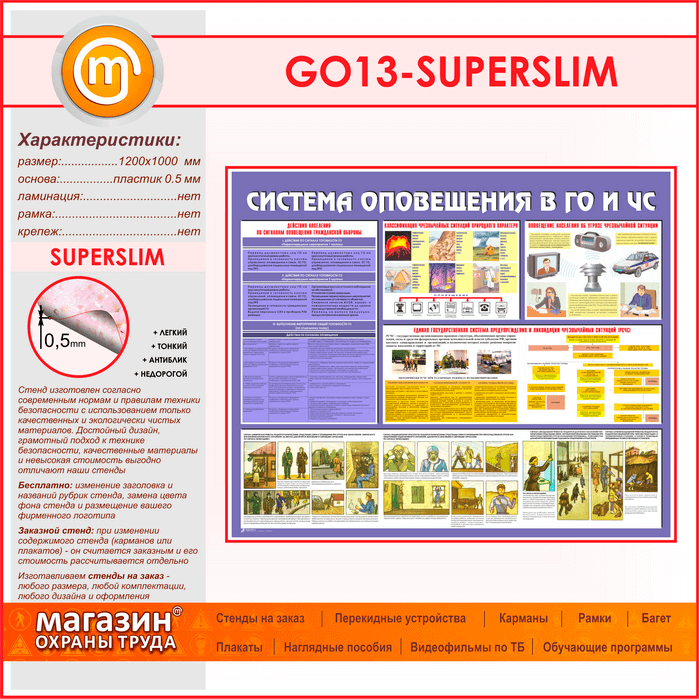 Стенд «Система оповещения в ГО и ЧС» (GO-13-SUPERSLIM) в Видном купить