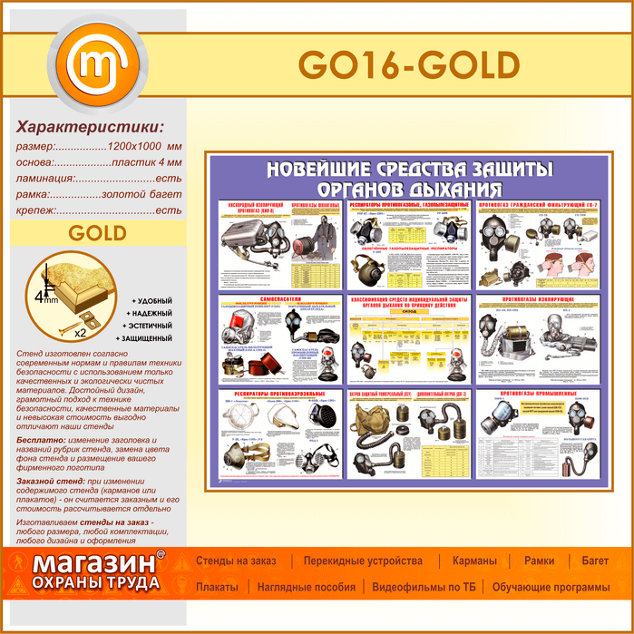 Стенд «Новейшие средства защиты органов дыхания» (GO-16-GOLD) в Видном купить