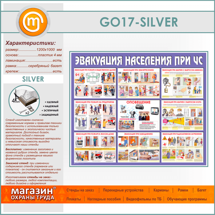 Стенд «Эвакуация населения при ЧС» (GO-17-SILVER) в Видном купить