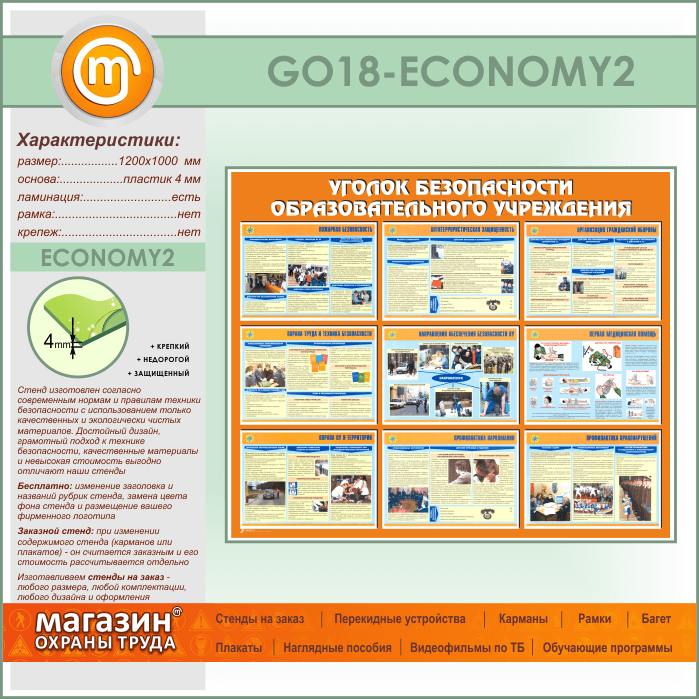 Стенд «Уголок безопасности образовательного учреждения» (GO-18-ECONOMY2) в Видном купить