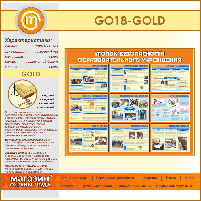 Стенд «Уголок безопасности образовательного учреждения» (GO-18-GOLD) в Видном купить