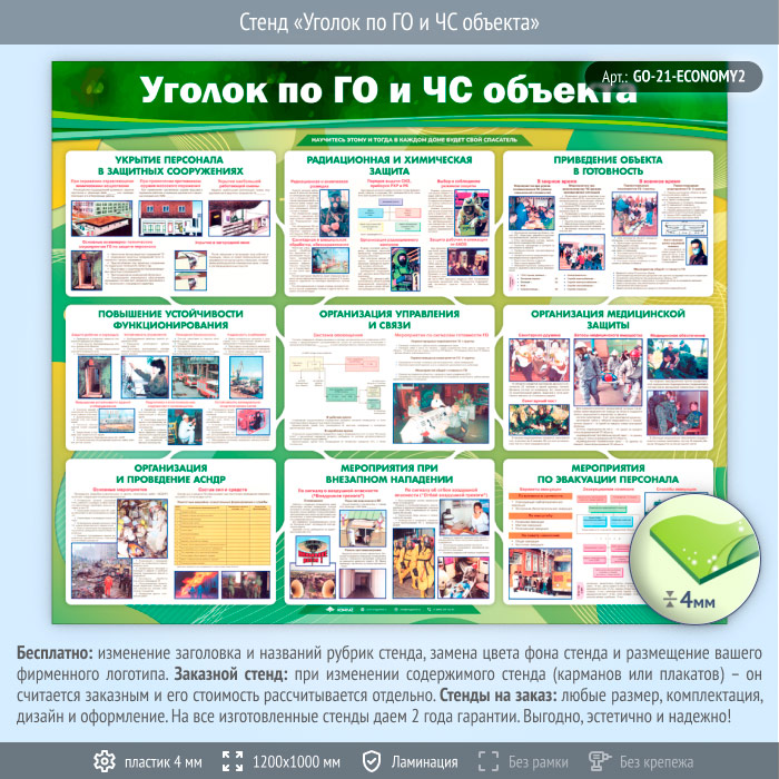 Стенд «Уголок по ГО и ЧС объекта» (GO-21-ECONOMY2) в Видном купить