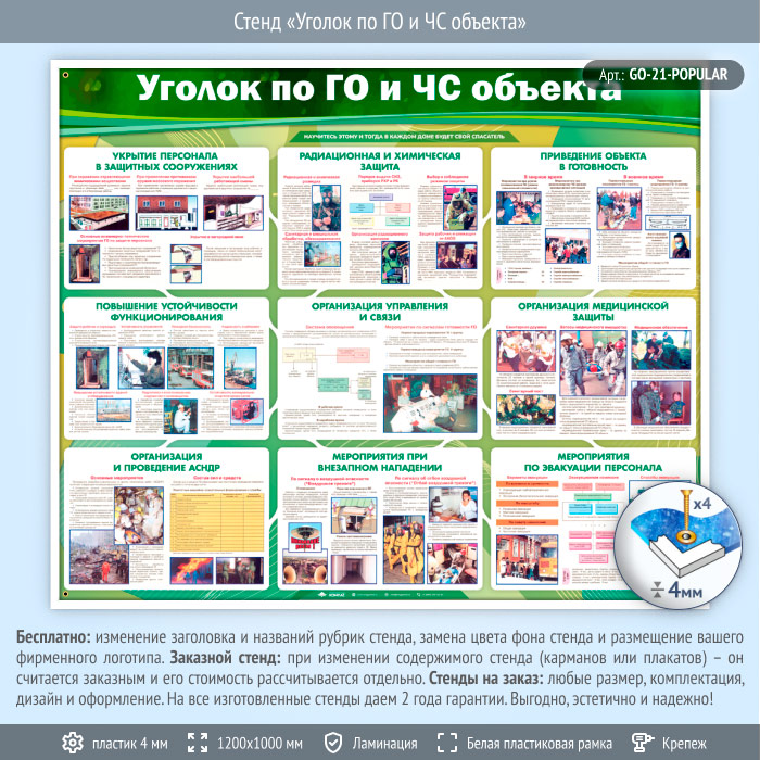 Стенд «Уголок по ГО и ЧС объекта» (GO-21-POPULAR) в Видном купить