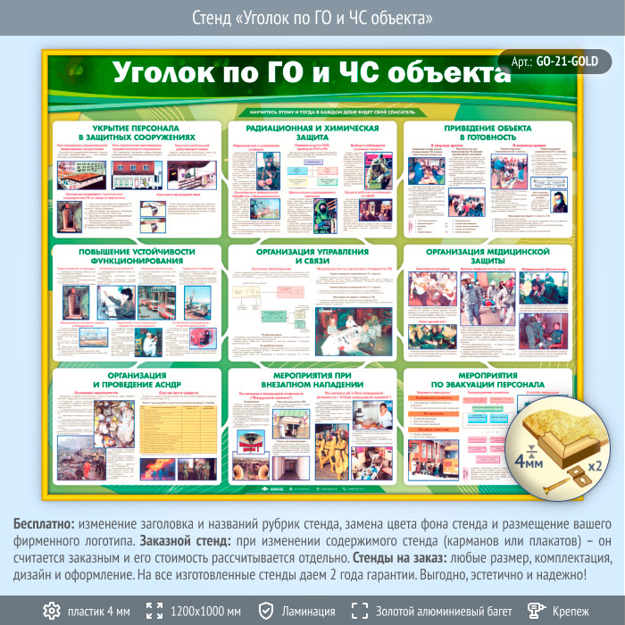 Стенд «Уголок по ГО и ЧС объекта» (GO-21-GOLD) в Видном купить