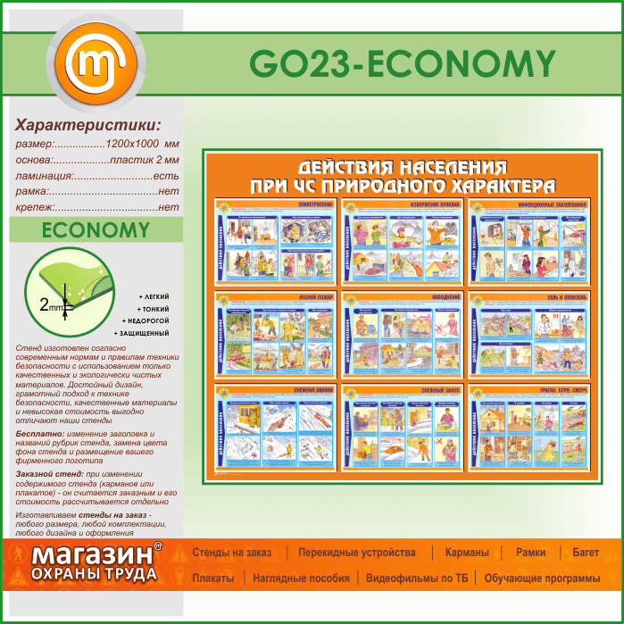Стенд «Действия населения при ЧС природного характера» (GO-23-ECONOMY) в Видном купить