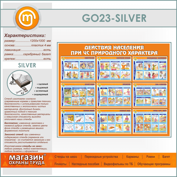 Стенд «Действия населения при ЧС природного характера» (GO-23-SILVER) в Видном купить