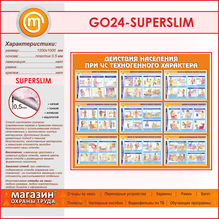 Стенд «Действия населения при ЧС техногенного характера» (GO-24-SUPERSLIM) в Видном купить