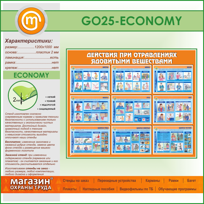 Стенд «Действия при отравлении ядовитыми веществами» (GO-25-ECONOMY) в Видном купить