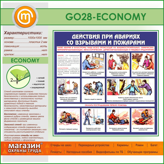 Стенд «Действия при авариях со взрывами и пожарами» (GO-28-ECONOMY) в Видном купить