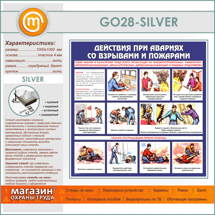 Стенд «Действия при авариях со взрывами и пожарами» (GO-28-SILVER) в Видном купить