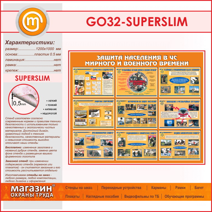 Стенд «Защита населения в ЧС мирного и военного времени» (GO-32-SUPERSLIM) в Видном купить