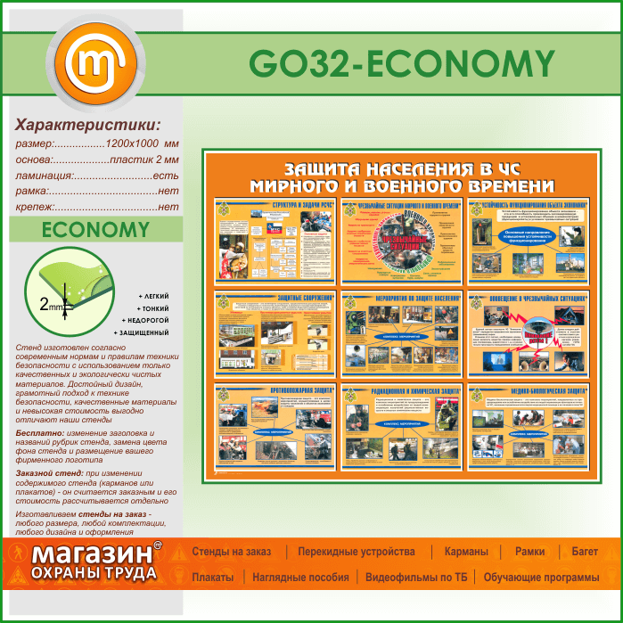 Стенд «Защита населения в ЧС мирного и военного времени» (GO-32-ECONOMY) в Видном купить