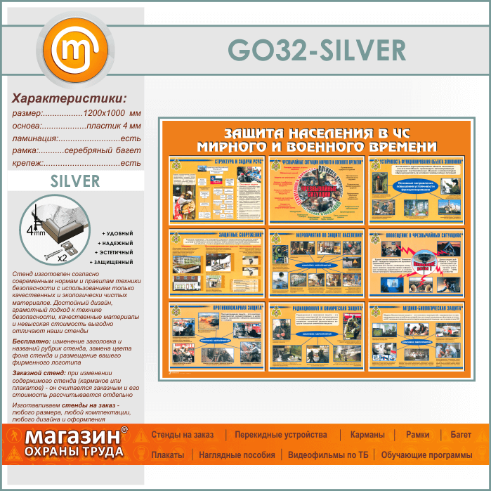 Стенд «Защита населения в ЧС мирного и военного времени» (GO-32-SILVER) в Видном купить