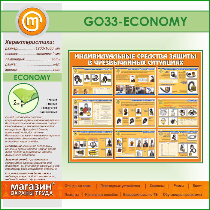Стенд «Индивидуальные средства защиты в чрезвычайных ситуациях» (GO-33-ECONOMY) в Видном купить