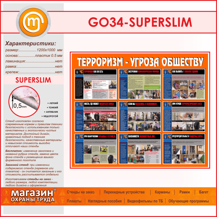 Стенд «Терроризм - угроза обществу» (GO-34-SUPERSLIM) в Видном купить