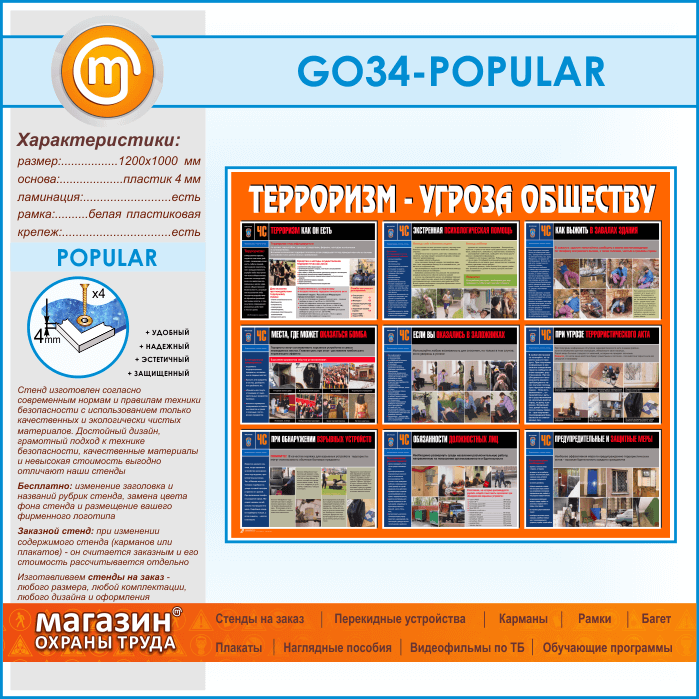 Стенд «Терроризм - угроза обществу» (GO-34-POPULAR) в Видном купить