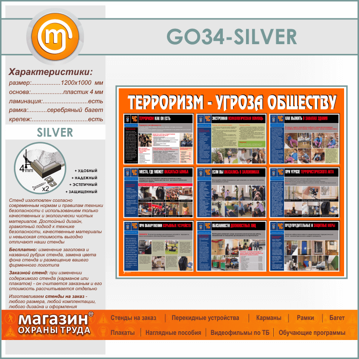 Стенд «Терроризм - угроза обществу» (GO-34-SILVER) в Видном купить