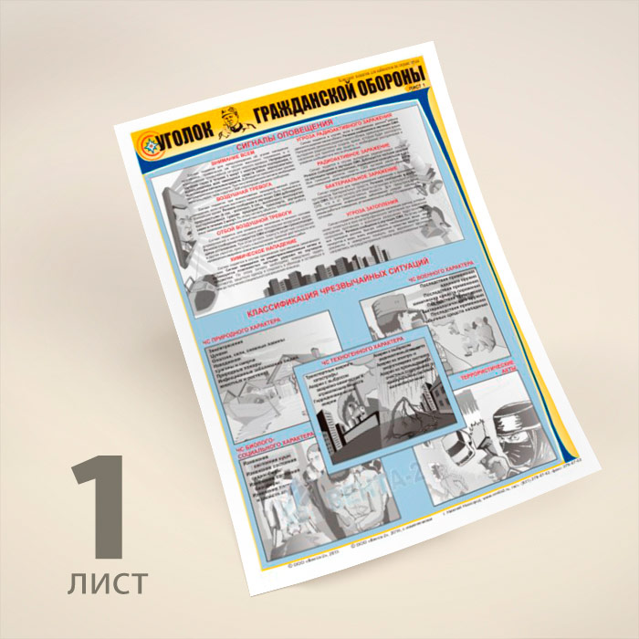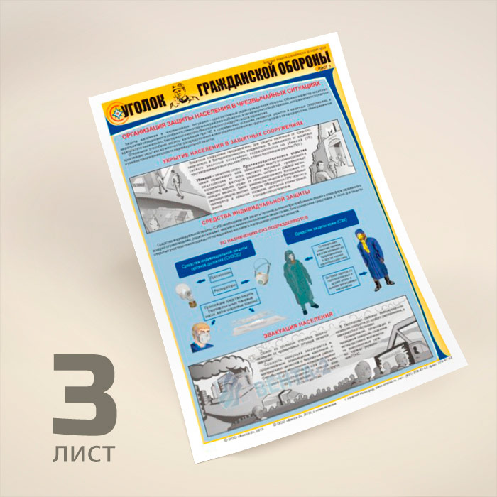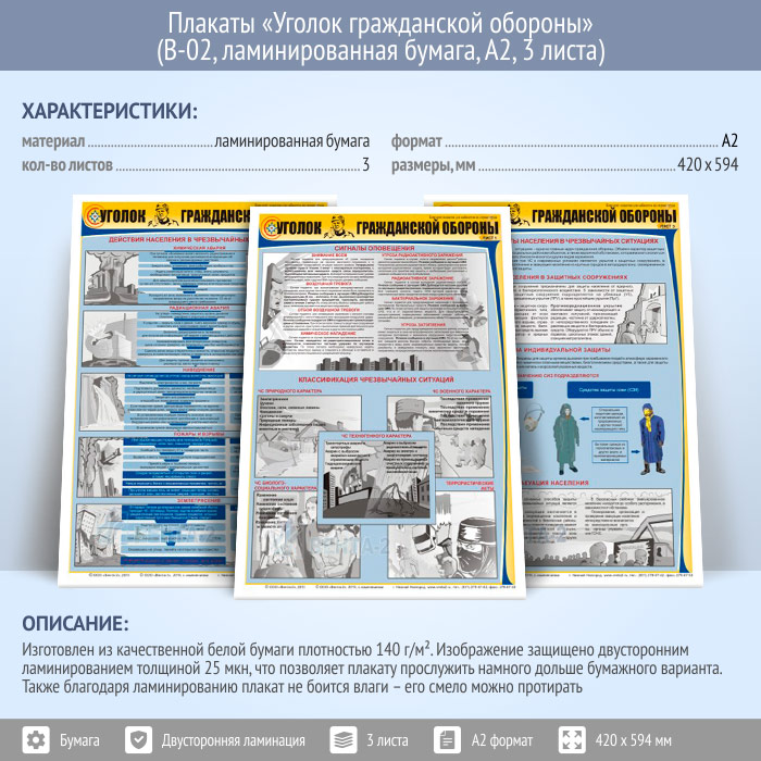 Плакаты «Уголок гражданской обороны» (В-02, ламинированная бумага, А2, 3 листа) в Видном купить