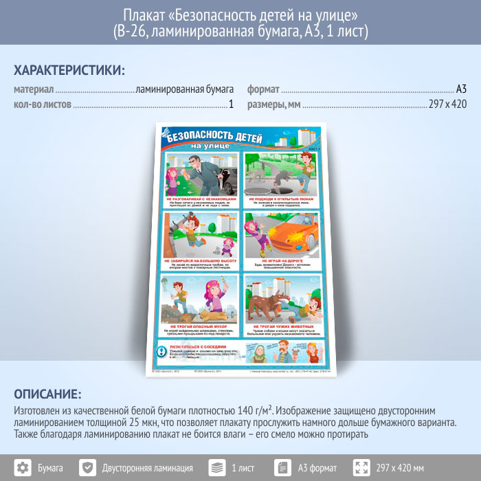Плакат «Безопасность детей на улице» (В-26, ламинированная бумага, А3, 1 лист) в Видном купить