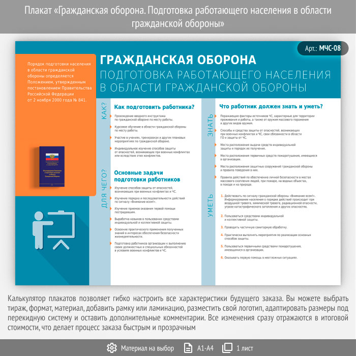 Плакат «Гражданская оборона. Подготовка работающего населения в области гражданской обороны» (МЧС-08, 1 лист) в Видном купить