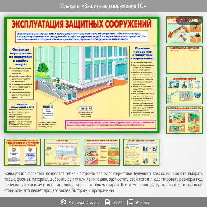 Плакаты «Защитные сооружения ГО» (ВЗ-08, 9 листов) в Видном купить