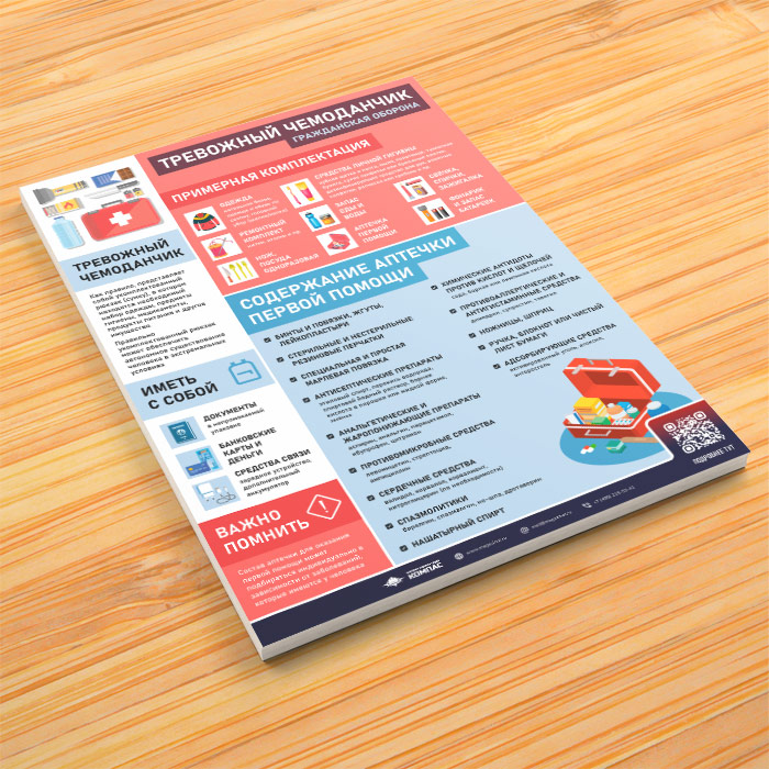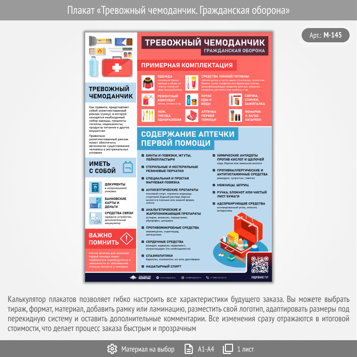 Плакат «Тревожный чемоданчик. Гражданская оборона» с QR (М-145, 1 лист) в Видном купить