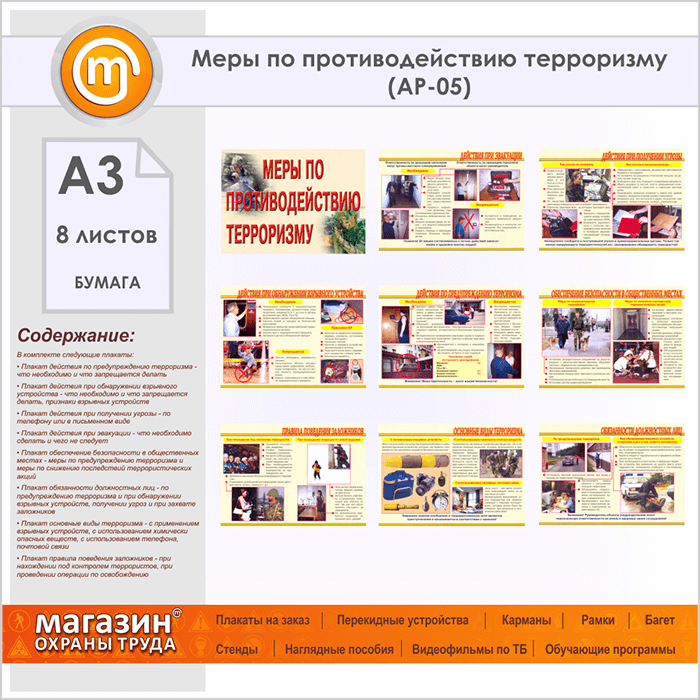 Плакаты «Меры по противодействию терроризму» (АР-05, бумага, А3, 8 листов) в Видном купить
