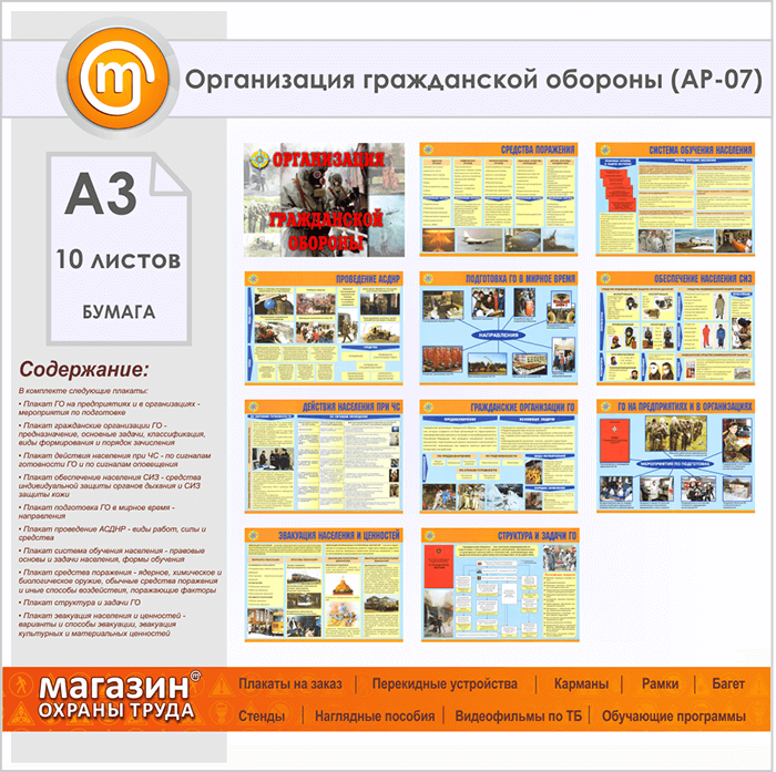 Плакаты «Организация гражданской обороны» (АР-07, бумага, А3, 10 листов) в Видном купить