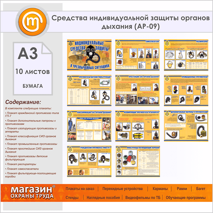 Плакаты «Средства индивидуальной защиты органов дыхания» (АР-09, бумага, А3, 10 листов) в Видном купить