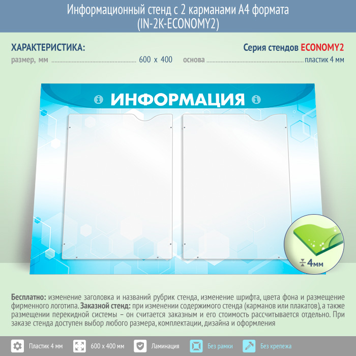 Информационный стенд с 2 карманами А4 формата (IN-2K-ECONOMY2) в Видном купить