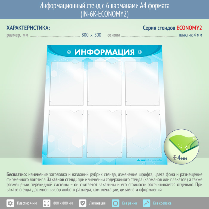 Информационный стенд с 6 карманами А4 формата (IN-6K-ECONOMY2) в Видном купить