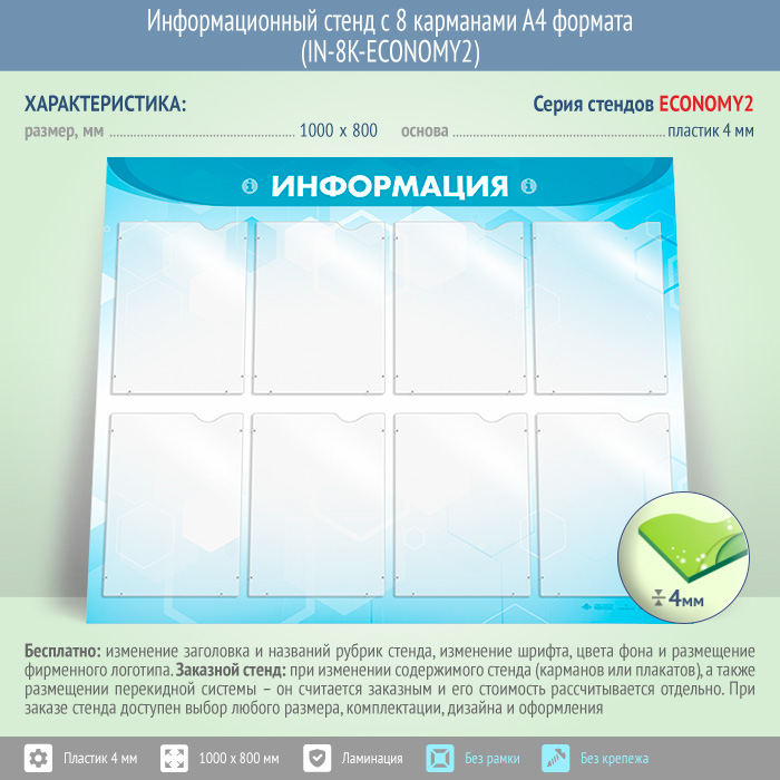 Информационный стенд с 8 карманами А4 формата (IN-8K-ECONOMY2) в Видном купить