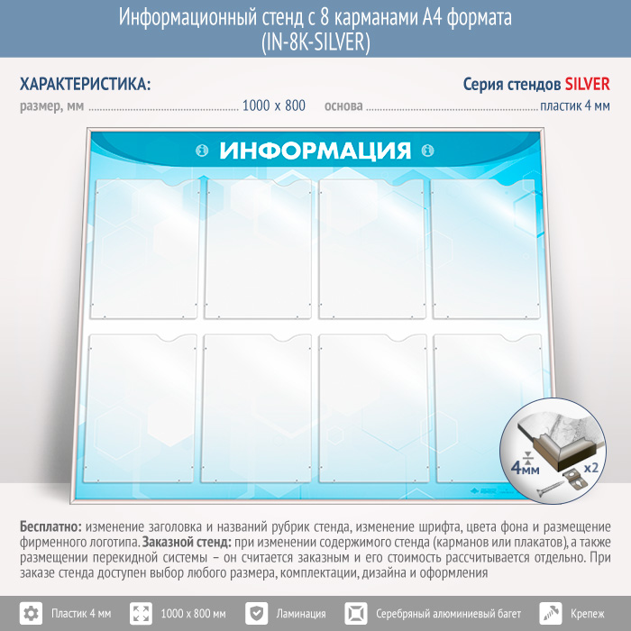 Информационный стенд с 8 карманами А4 формата (IN-8K-SILVER) в Видном купить
