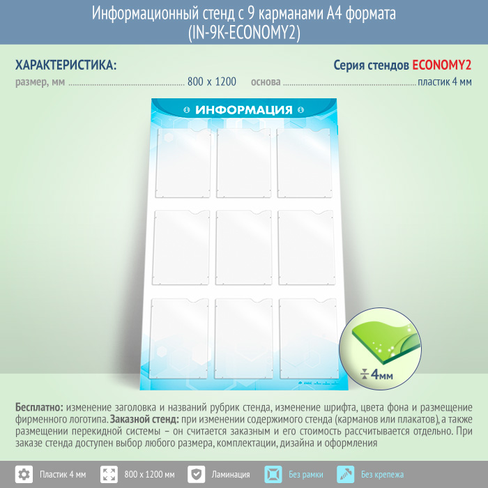 Информационный стенд с 9 карманами А4 формата (IN-9K-ECONOMY2) в Видном купить