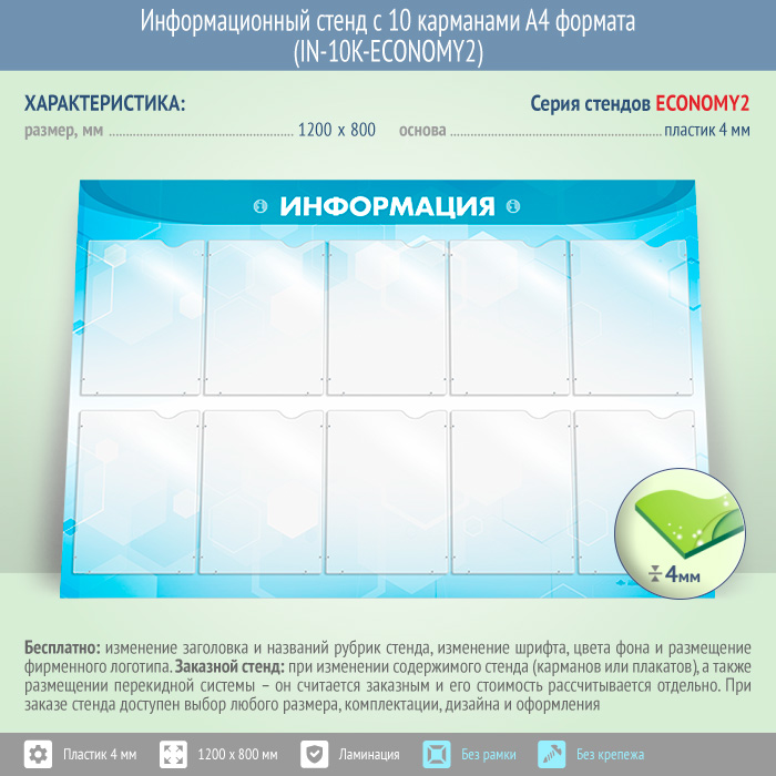 Информационный стенд с 10 карманами А4 формата (IN-10K-ECONOMY2) в Видном купить