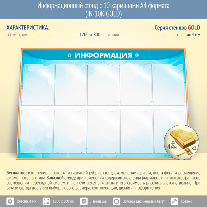 Информационный стенд с 10 карманами А4 формата (IN-10K-GOLD) в Видном купить