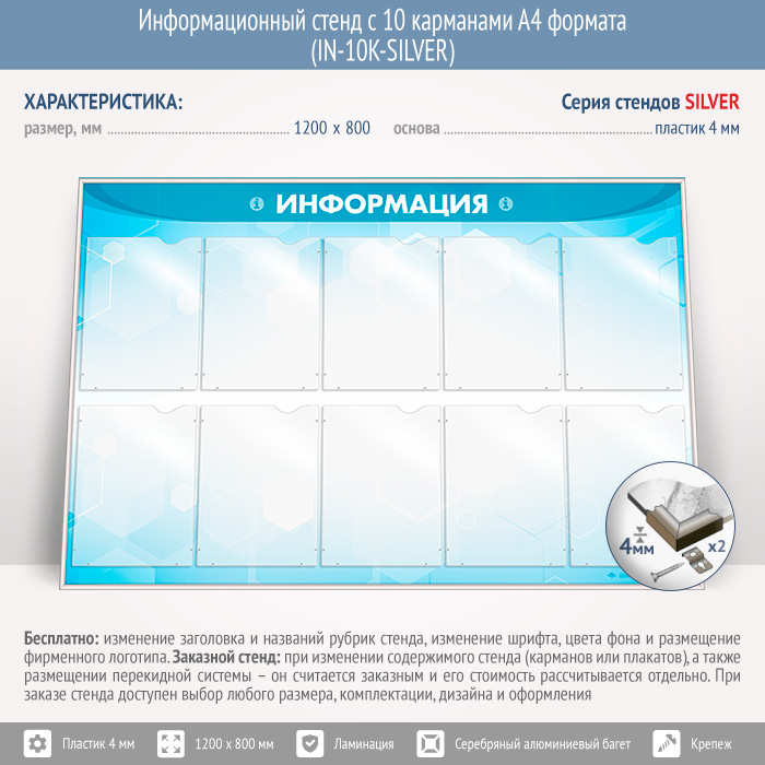Информационный стенд с 10 карманами А4 формата (IN-10K-SILVER) в Видном купить