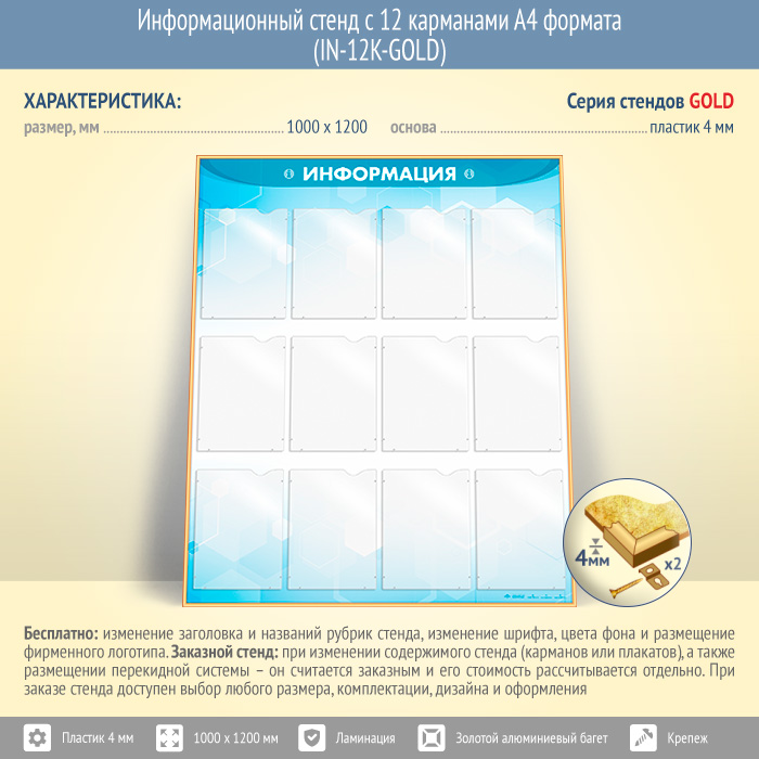 Информационный стенд с 12 карманами А4 формата (IN-12K-GOLD) в Видном купить