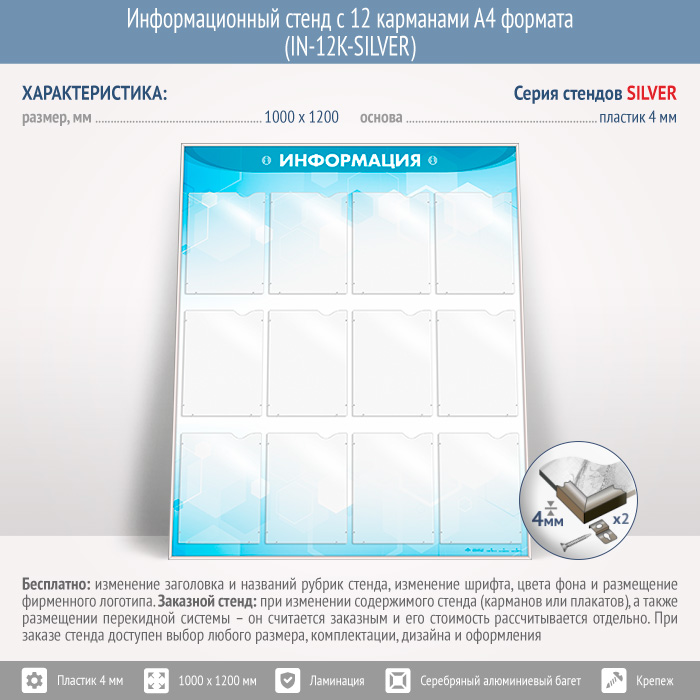 Информационный стенд с 12 карманами А4 формата (IN-12K-SILVER) в Видном купить