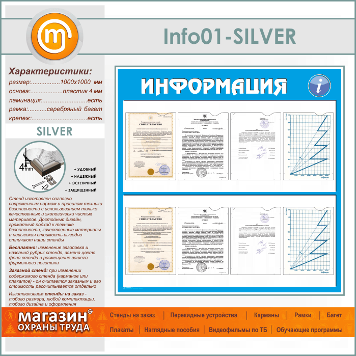 Стенд «Информация» с 8 карманами А4 формата (IN-01-SILVER) в Видном купить