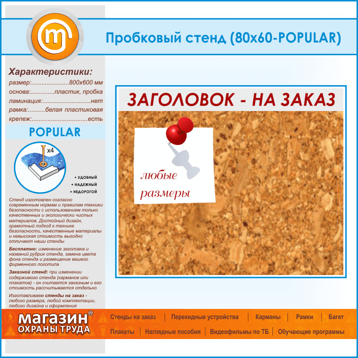 Пробковая доска с заголовком, 80х60 см (IN-06-POPULAR) в Видном купить