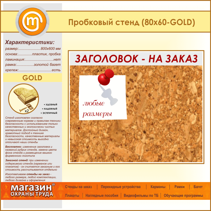 Пробковая доска с заголовком, 80х60 см (IN-06-GOLD) в Видном купить