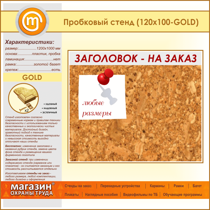 Пробковая доска с заголовком, 120х100 см (IN-06-GOLD) в Видном купить